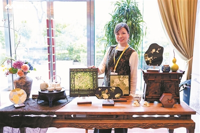 张红姬在展位展示瓯塑作品