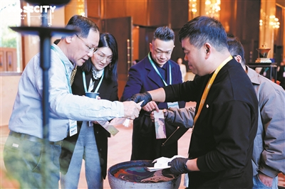 除此之外,拥有800多年历史的瑞安木活字印刷术完整呈现20余道工序,让庐山文控国际旅行社有限公司的刘天赐赞不绝口,他拿出带来的白鹿洞书院“文具匣”与温州非遗文创展开对话,直言:“要借鉴温州非遗文创经验,期待有机会探讨与庐山景区的合作。”