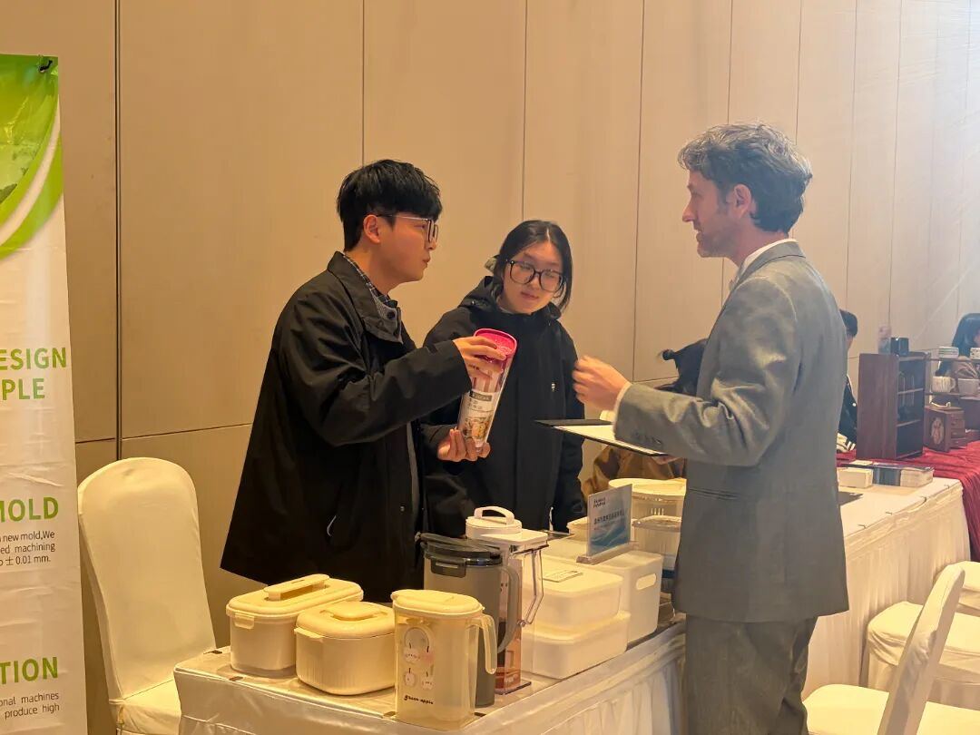 会议结束后,外商们移步到选品洽谈区,展开面对面洽谈。数十张洽谈桌瞬间被激活,企业代表们纷纷亮出“王牌”产品,从精密汽摩配件到智能家居品,产品琳琅满目。一时间,翻译声、讨论声、产品演示声此起彼伏。来自法国的采购商萨巴蒂尔对一款真空封口机爱不释手,称赞其“设计新颖、功能实用,非常契合我方市场需求”。