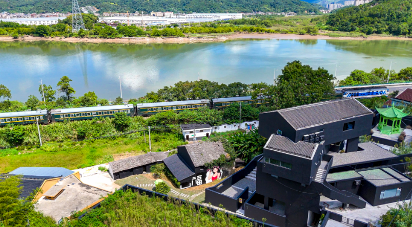 沿街还有一段金温铁路旧址。绿皮火车在老一辈人的记忆中占据重要位置,连接山城与外界,也承载着青春与生活片段。设计师刘捷凯提出“记忆重塑与生态共生”的策略:铁轨被保留置于景观带,旧车厢改造成小型展陈空间,藤蔓攀墙,像时间的手指轻轻拂过。工业痕迹与自然植被交织,荒废边角地转化为文化与生态兼具的“金角银边”,承载历史,也让社区的文明气息自然生长。