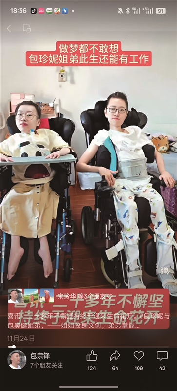 “其实这次已经是包珍妮第二次入职金企(北京)科技集团有限公司。早在2023年,在市残联的帮助下,珍妮已成功入职该公司,但因身体原因,工作了3个月后无奈离职。这次姐弟俩同时入职该公司,珍妮主要工作是写文案,奥健则是软件开发。特别感恩公司方面对重度残疾姐弟的关爱,给予他们一份稳定的收入。这份来之不易的工作,不仅是自立的起点,更是生命价值的绽放。”包宗锋说。