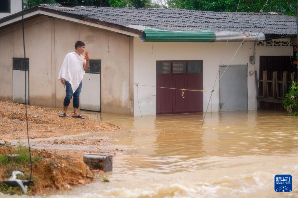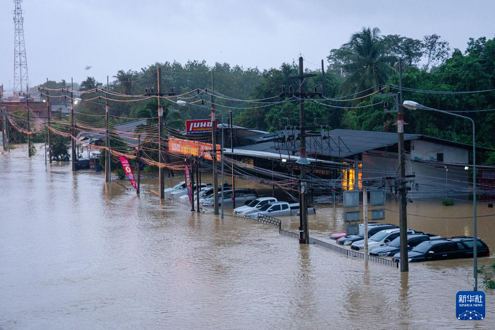 这是11月25日在泰国宋卡府合艾市郊拍摄的洪灾景象。