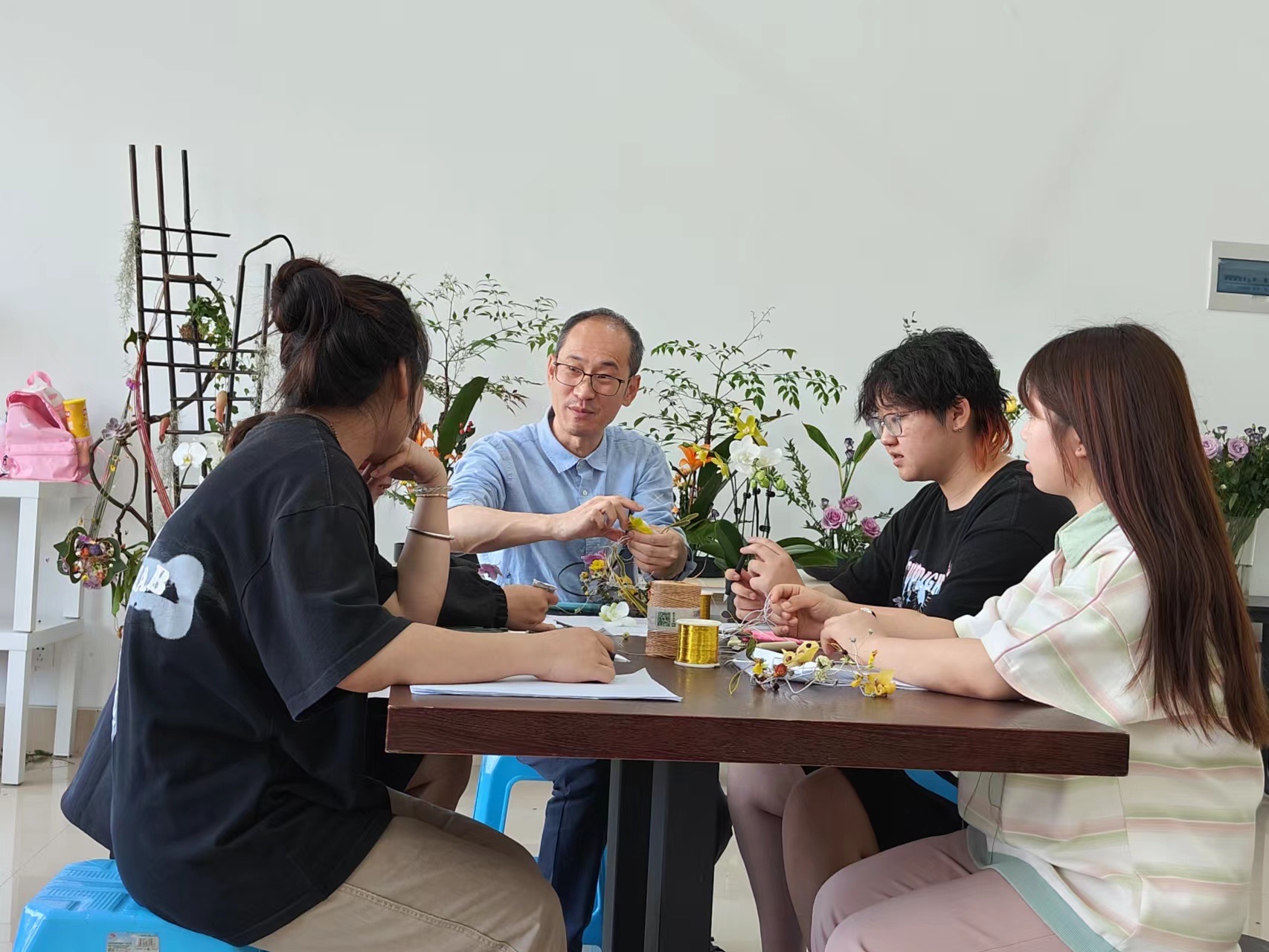 这堂“以花载道”的课程,展现了温科院突破传统思政边界、构建“圈层式、浸润式、协同式”育人模式的创新探索。作为全国唯一保留农科院建制的高职院校,学校立足农林牧渔类专业特色,将思政元素融入“思政课—通识课—专业课”的圈层课程结构中,而花文化系列课程正是专业课延伸的典型代表。王伟团队还将课程延伸至田间地头,组织学生走进康养基地,为老年研学群体设计“兰韵初心”主题活动,让学生在传授花艺技能的同时,传递中华优秀传统文化与爱国精神,实现“教学做一体化、思专教相融合”。