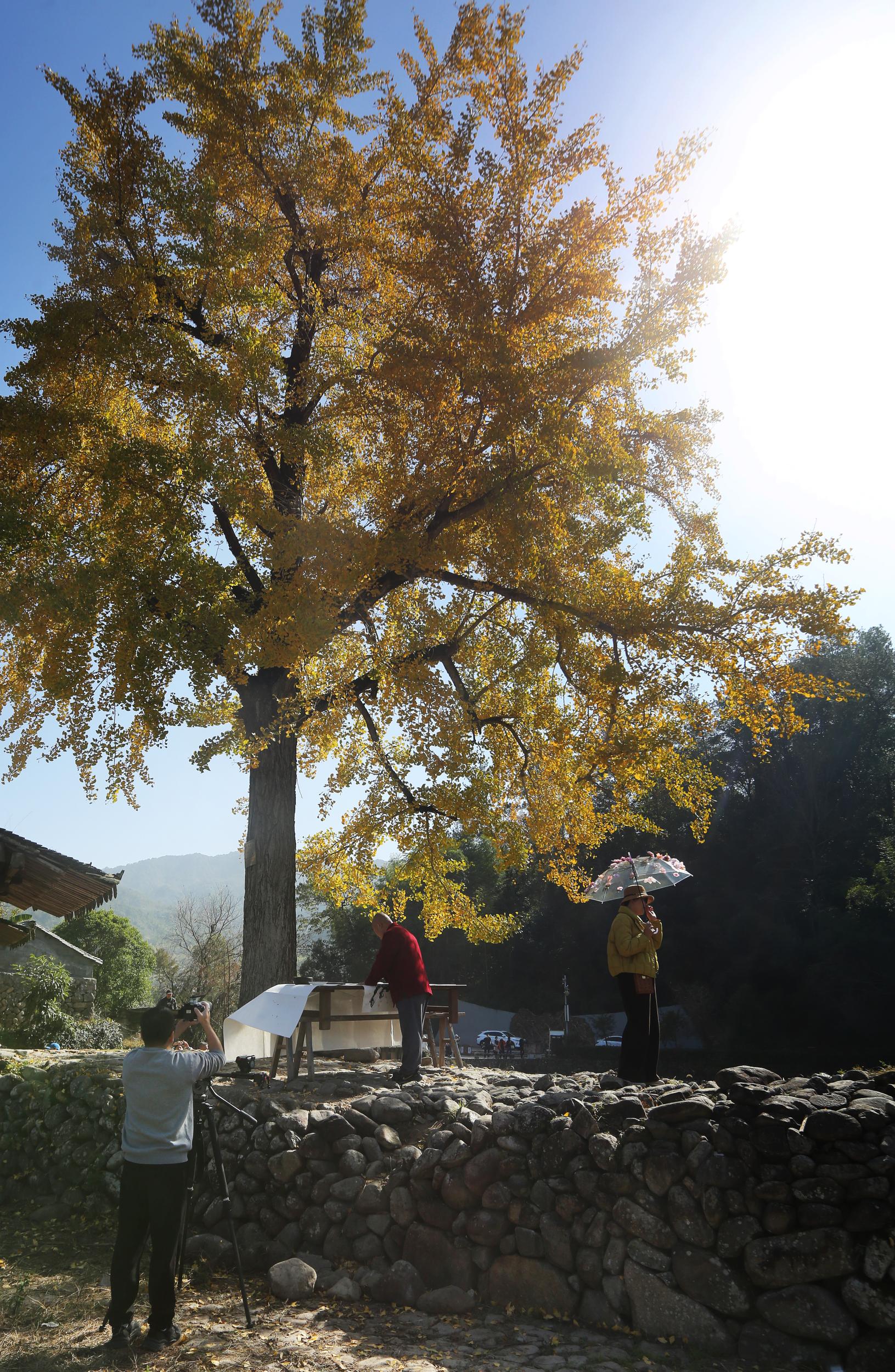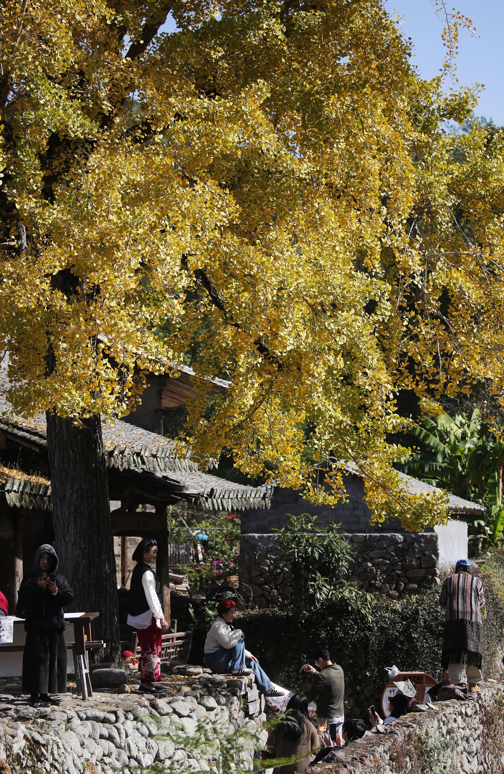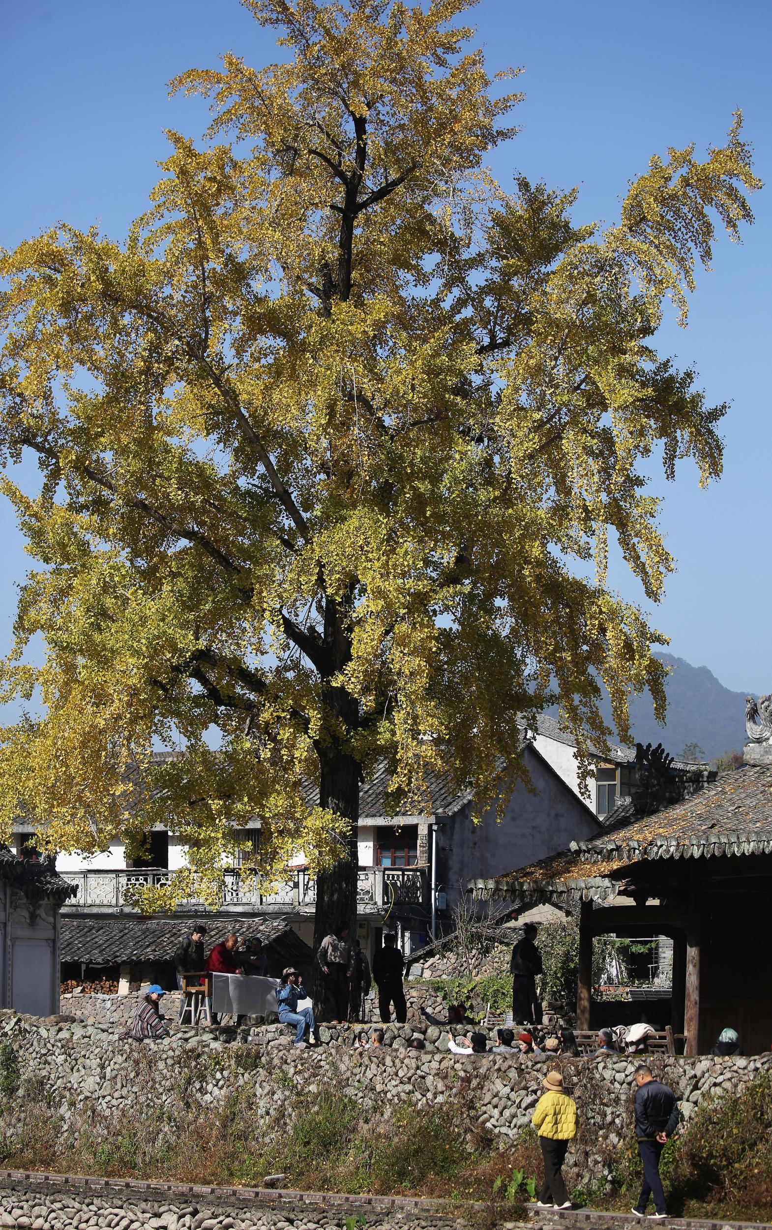 温州网讯 11月26日,永嘉县岩坦镇屿北古村,游人竞相前来打卡村中水岸边的一株数百年树龄的古银杏。随着银杏的树叶渐渐转黄,眼下屿北迎来了今年赏银杏最佳时节。屿北古村始建于唐,以南宋“一门三进士,父子两尚书”的汪氏家族闻名,拥有中国历史文化名村、中国传统村落等国家级称号。随着温州近日显著降温,近期,我市各地的一些百年银杏也纷纷进入了最佳赏叶期。