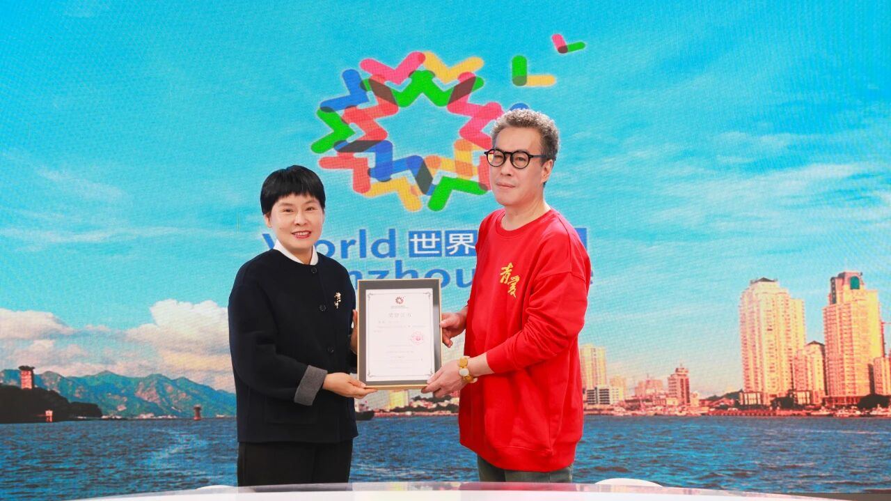 温州市委统战部副部长蔡仁燕为嘉宾颁发“世界温州人同心讲坛”主讲嘉宾荣誉证书