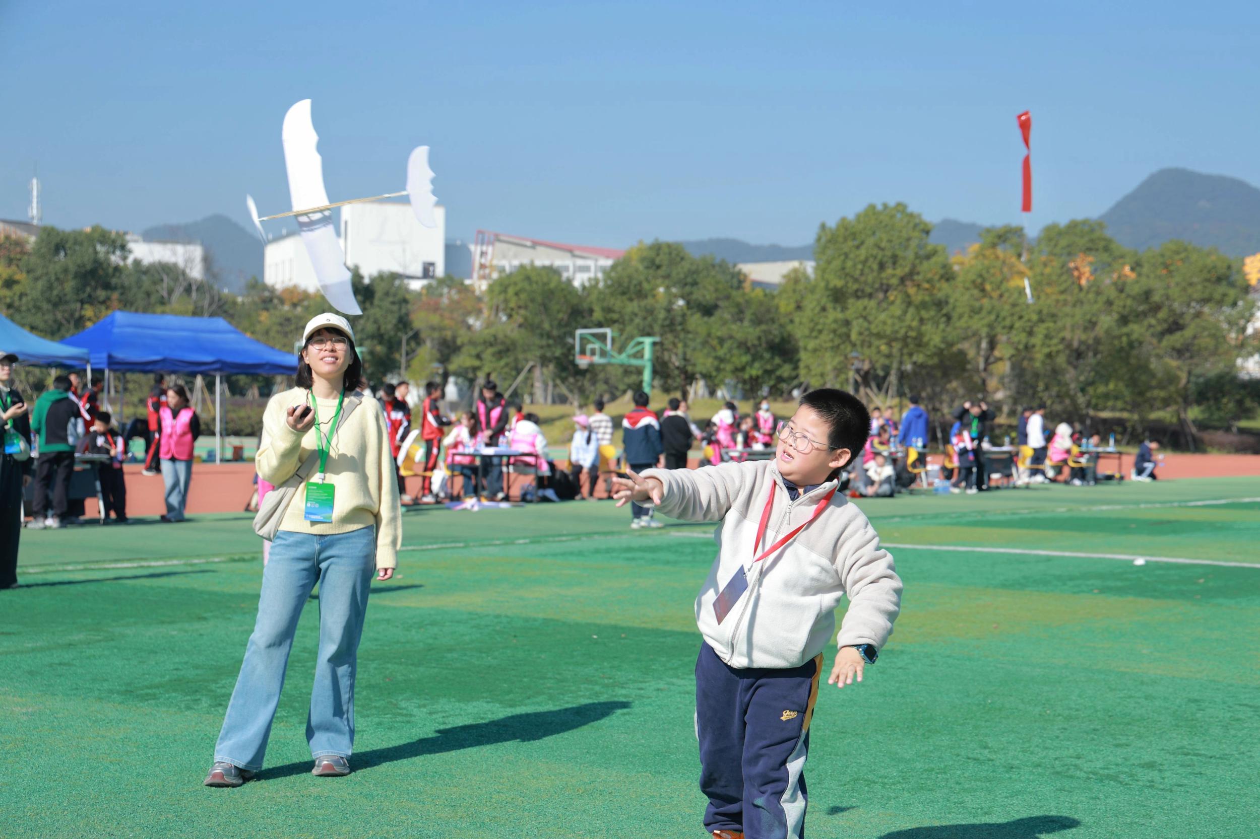 传统航模项目(含带降火箭、橡筋飞机、遥控纸飞机)依然备受欢迎,共吸引887人参与,其中的“纸飞机穿龙门”“带降火箭滞空赛”,是直接源自全国航模锦标赛的项目,而新增的多轴无人机足球(413人参与)和FPV穿越机(57人参与)均为拥有专项世界锦标赛的新兴领域。