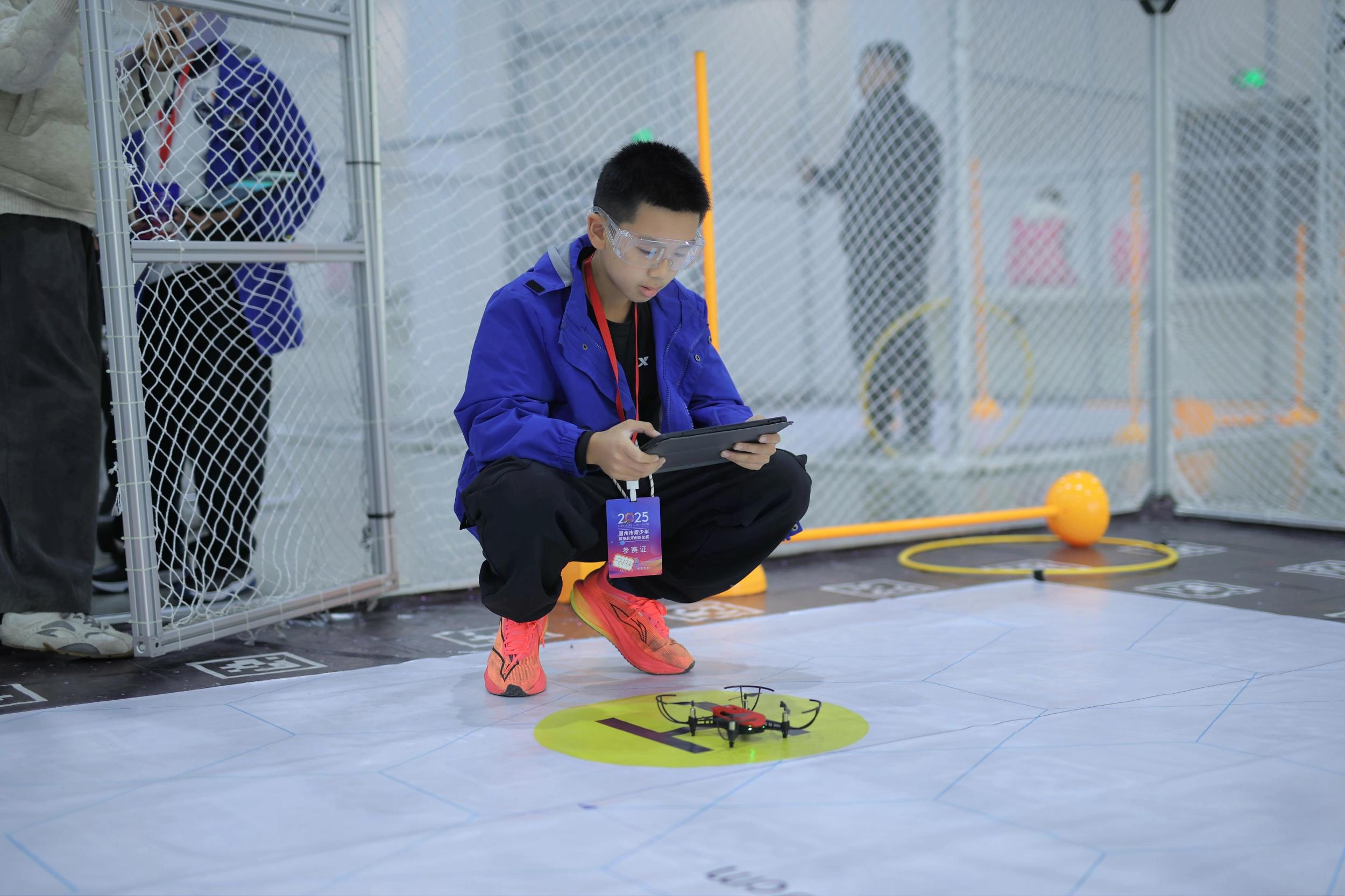 上午10时整,2025年温州市青少年航空航天创新比赛的各项赛事正式拉开战幕。本届赛事新增了AIGC创意短片创作、FPV穿越机、多轴无人机足球等前沿项目,且精准对接国家认可的“白名单”竞赛体系。