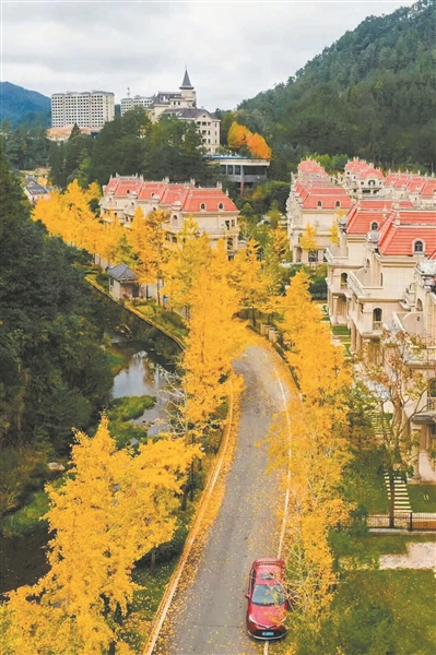 天鹅堡小镇内,金黄的银杏与典雅的欧式建筑相映生辉。驻足其间,恍若置身异国的油画世界,每一眼都令人沉醉。