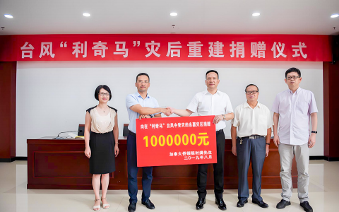 陈时满向在“利奇马”台风中受灾的永嘉灾区捐赠100万元