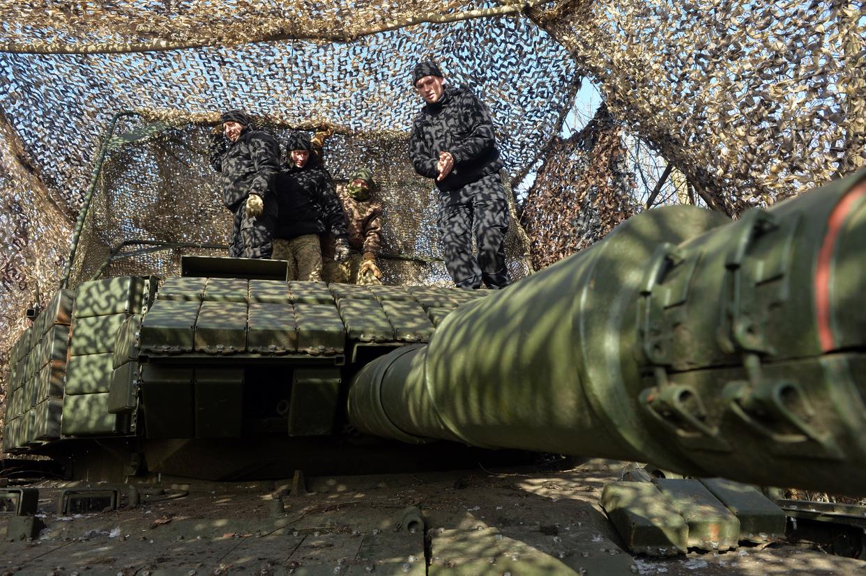 2月9日,乌军第5独立重型机械化旅第1坦克营士兵在检查坦克。新华社发(彼得·德鲁克摄)