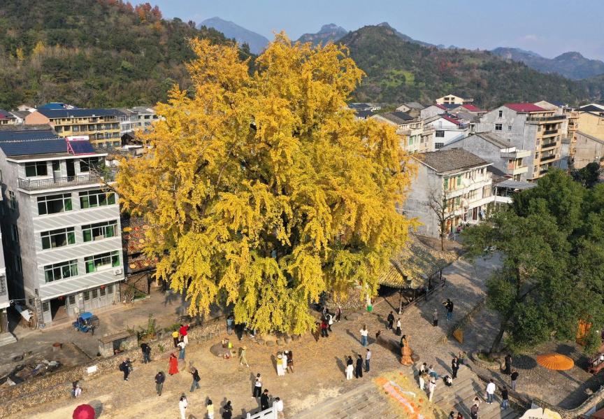 为了配合游客观景游玩,永嘉当地举行的“宋韵银泉 杏运金秋”大若岩银杏文化月将在12月3日上午启动,主办方为游客准备了银杏市集、民谣歌手演唱、琵琶器乐演奏等多彩的活动,丰富游客的观赏体验。摄影: 郑鹏