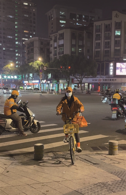 刚开始送餐时,由于操作还不熟练,加上自行车速度无法与电动车相比,小陈都只敢一单一单地接,以确保准时送达。随着经验积累,她如今已能从容地同时接下两单顺路的外卖。