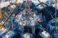 12月3日拍摄的哈尔滨冰雪大世界冰建施工现场(无人机照片)。张树摄