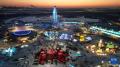 12月5日,在哈尔滨冰雪大世界施工现场,工人在进行冰建作业(无人机照片)。记者 张涛 摄