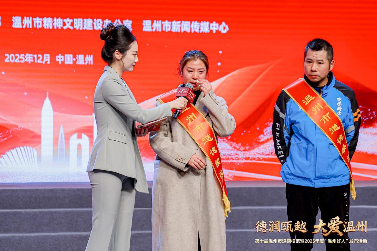 12月5日下午,第十届温州市道德模范暨2025年度“温州好人”发布活动在温州举行。活动现场,15位第十届温州市道德模范的故事徐徐展开——