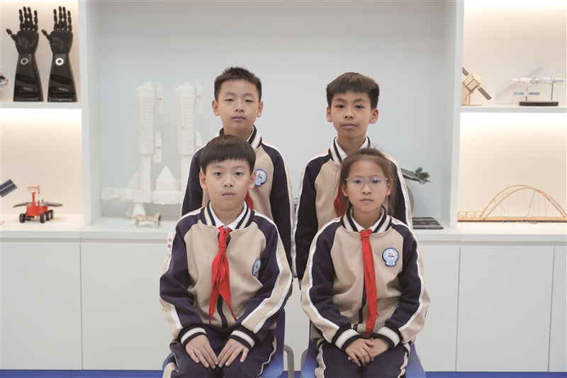 程栩泽(右一)、周礼耀(右二)、鲁昱辰(左一)、麻嘉怡(左二): 温州市市府路小学三年级学生,“勇敢去做”小组成员。小组合作获2025世界机器人大赛NeuroMaster脑科学人工智能挑战赛浙江省赛一等奖。 程栩泽 三(3)班 其他荣誉:市青少年智力运动会模拟飞行赛男子组、无人机任务赛男子组三等奖;“致敬肖邦”华沙国际青少年钢琴大赛温州赛区银奖;校级科学学科达人、数学达人等。 麻嘉怡 三(6)班 其他荣誉:市数字素养提升实践活动(微电影项目)三等奖;鹿城区信息素养提升实践活动(微电影项目)三等奖;温州市硬笔书法比赛优秀奖;校英语节比赛一等奖;校艺术节比赛二等奖。 鲁昱辰 三(4)班 其他荣誉:市少儿跨年晚会最佳小演员奖;Python编程通过二级;校艺术节比赛一等奖。 周礼耀 三(6)班 其他荣誉:校魔尺比赛一等奖;校数独评比二等奖;校级数学小达人。