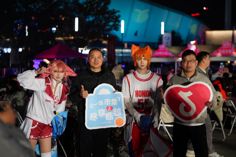 本次市集不仅有美食,还有丰富多彩的文化活动。主办方联合抖音生活服务打造了“温州篮不住——发现宝藏温州”的宝藏打卡点,篮球宝贝、国漫COSER巡游互动等活动吸引了大量年轻观众驻足拍照打卡。