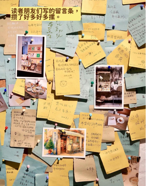 虽然店里明确拒绝人像摆拍,但这里还是成为小红书等社交媒体上的热门打卡点。每到音乐节等活动期间,书店里总会涌入许多外地的文艺青年。留言本上,天南海北的手写字迹,攒了一摞又一摞。