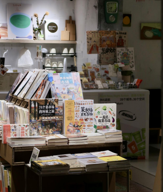 在烟火气和接地气之外,这里还弥漫满满的书香气,散发出烹饪时常有的暖光晕。作为国内为数不多的料理主题独立书店,这里只卖和食物、饮食文化有关的书籍、周边。店名取自温州的本土特色凉菜盘菜生,店里还曾收留过一只叫“酱油醋”的小狗。