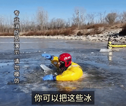 - 如果冰面没有那么结实或者已经发生一定的破碎,可以想办法把冰压到自己身下,利用腿部“打水”向前面滑行的方法脱困。