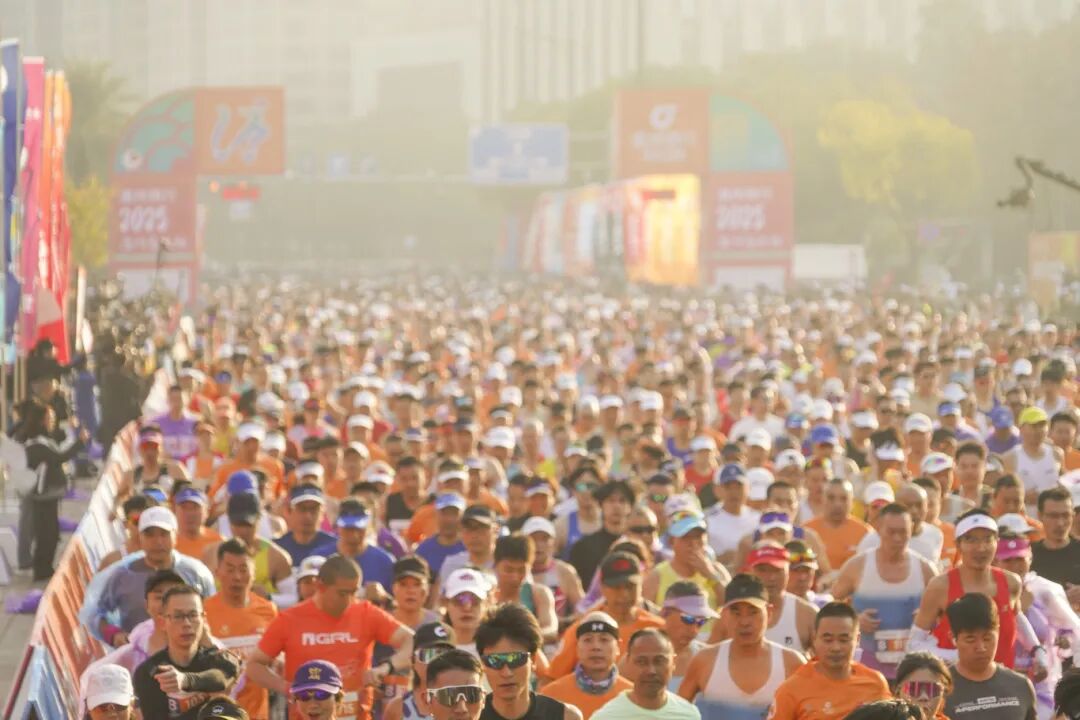 2025温州马拉松在世纪广场鸣枪开跑。苏巧将 摄