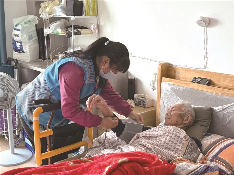 除了智能设备的全天候守护,王家夫妻俩每周还能享受两次、每次两小时的专业上门养老服务,包括测量血压、康复按摩等项目,进一步缓解了家庭的照护压力。