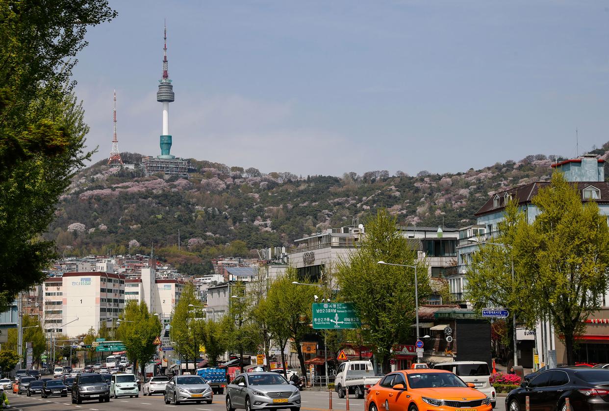这是2019年4月19日,车辆行驶在韩国首尔的街道上。新华社记者王婧嫱摄