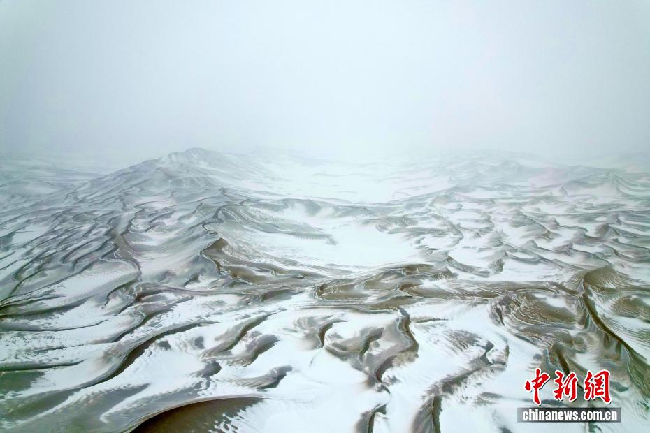 12月11日,新疆鄯善县境内的库木塔格沙漠迎来今冬首场降雪,被白雪覆盖的沙漠蔚为壮观。