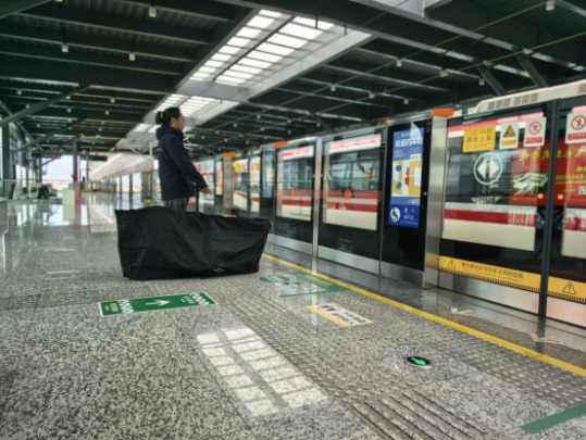 在S2线万岙站,准备进站的市民张先生正将自行车装入车站提供的打包袋。“袋子很结实,装好后拎着走也不怕蹭到别人。既能保障乘车秩序,又方便了我们骑车人,这样的服务很暖心!”说完,张先生利落地收起打包袋朝电梯走去。