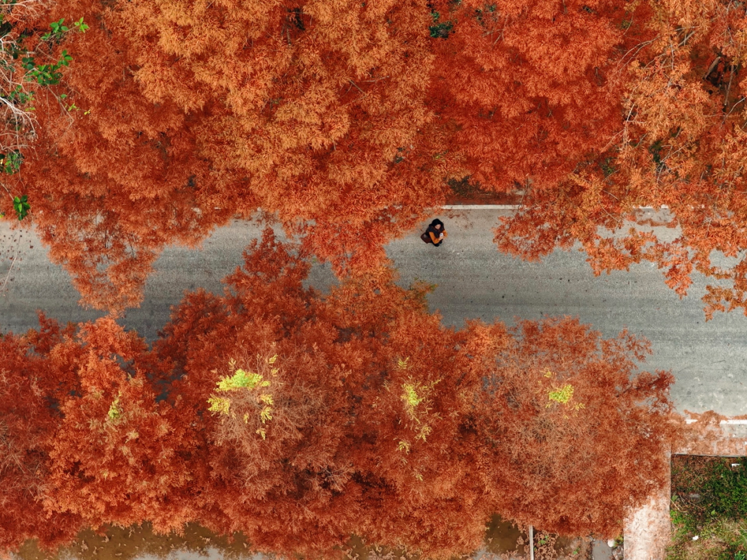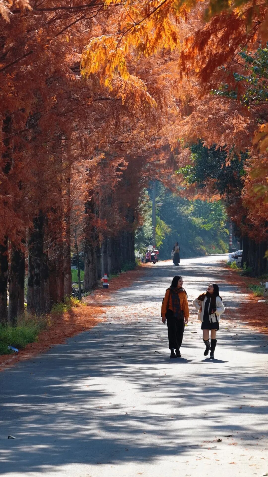 漫山遍野的黄叶红杉宛如油画般浓郁,人少景美,为山城增添一抹独特的美意。目前红叶进度已到100%,最佳观赏期将持续至12月下旬。