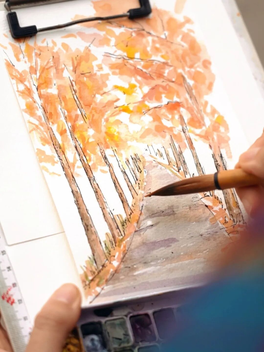 有人停下脚步,走进林间,听风吹过树梢的簌簌声,呼吸带着草木清香的空气;有人举起镜头,或摊开画板,把这一刻的颜色、温度与光线,悄悄存档。