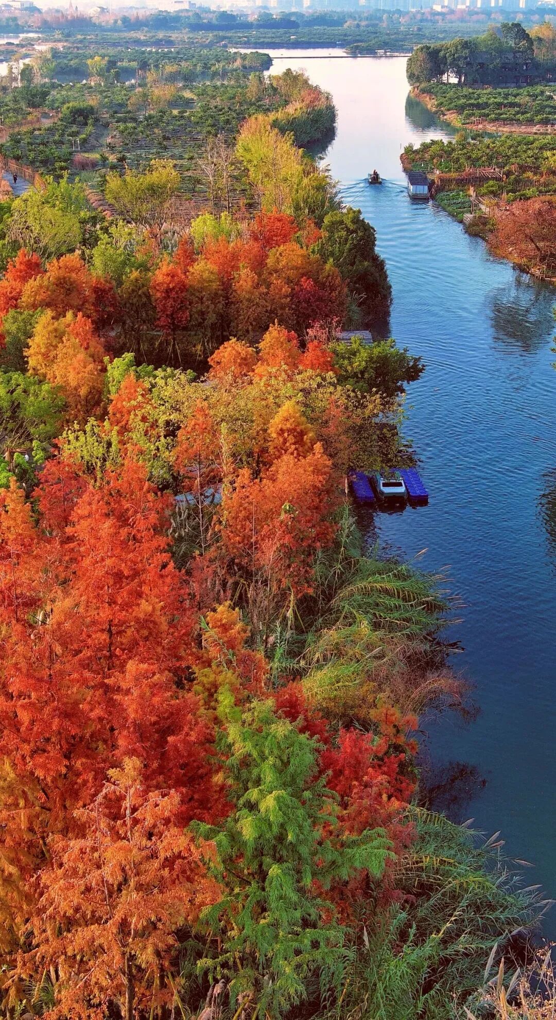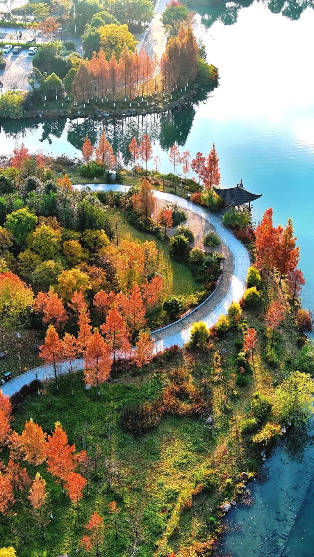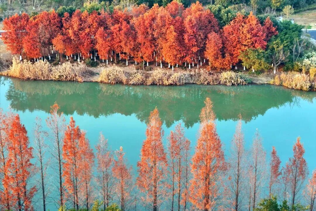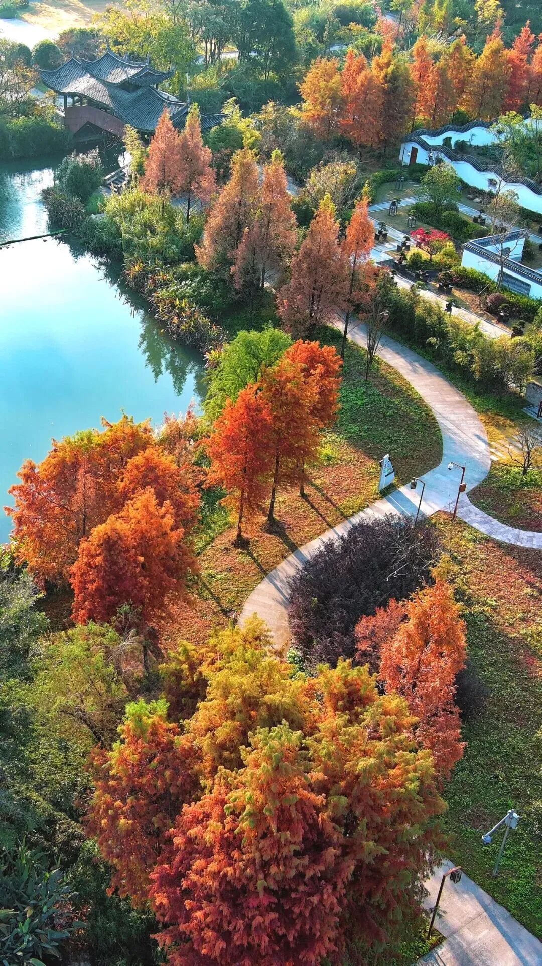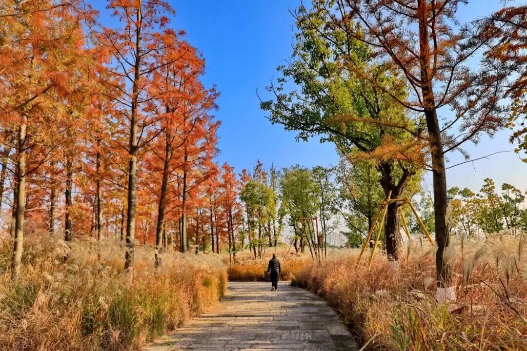 沉淀了一季的水杉,眼下又在三垟湿地汇成冬日的热烈。它们散落在西环线、榕树园生态示范片、五福园南怀瑾书院……只需随意走走,便有很大概率与这片绯红不期而遇。