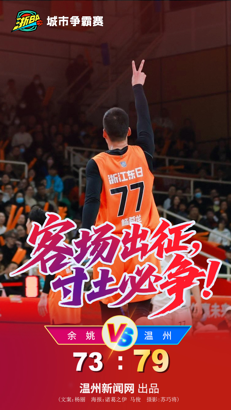 温州网讯(记者 温婉)12月13日晚,浙BA城市争霸赛在余姚技师学院体育馆举行,温州队客场挑战余姚队。开场哨响后,双方迅速进入竞技状态,攻防节奏紧凑有序。首节,温州队稳扎稳打,防守端严密布防、积极抢断,进攻端配合默契、多点开花,始终保持领先优势。第二节,余姚队凭借着精准投篮、默契配合,迅速将比分缩小至1分。易边再战,温州队打出多波流畅默契的快攻连线,牢牢掌控比赛节奏,最终温州以79:73战胜了余姚队,延续浙BA不败战绩。