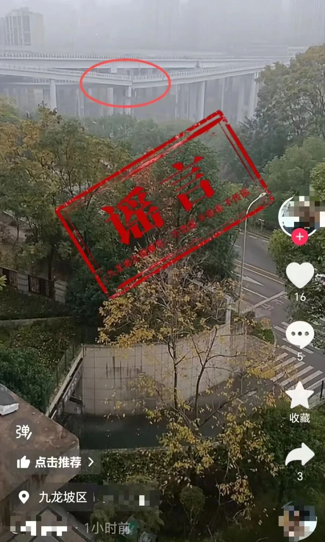 近日,有网民在互联网平台发布视频称“陈家坪那个蟠龙大桥新修的落下去了,沉下去了”,引发社会关注。经核实,该信息系谣言。