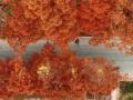 当光线穿过层层叠叠的红叶,整片树林便通透起来,散发着温暖而明亮的光晕。