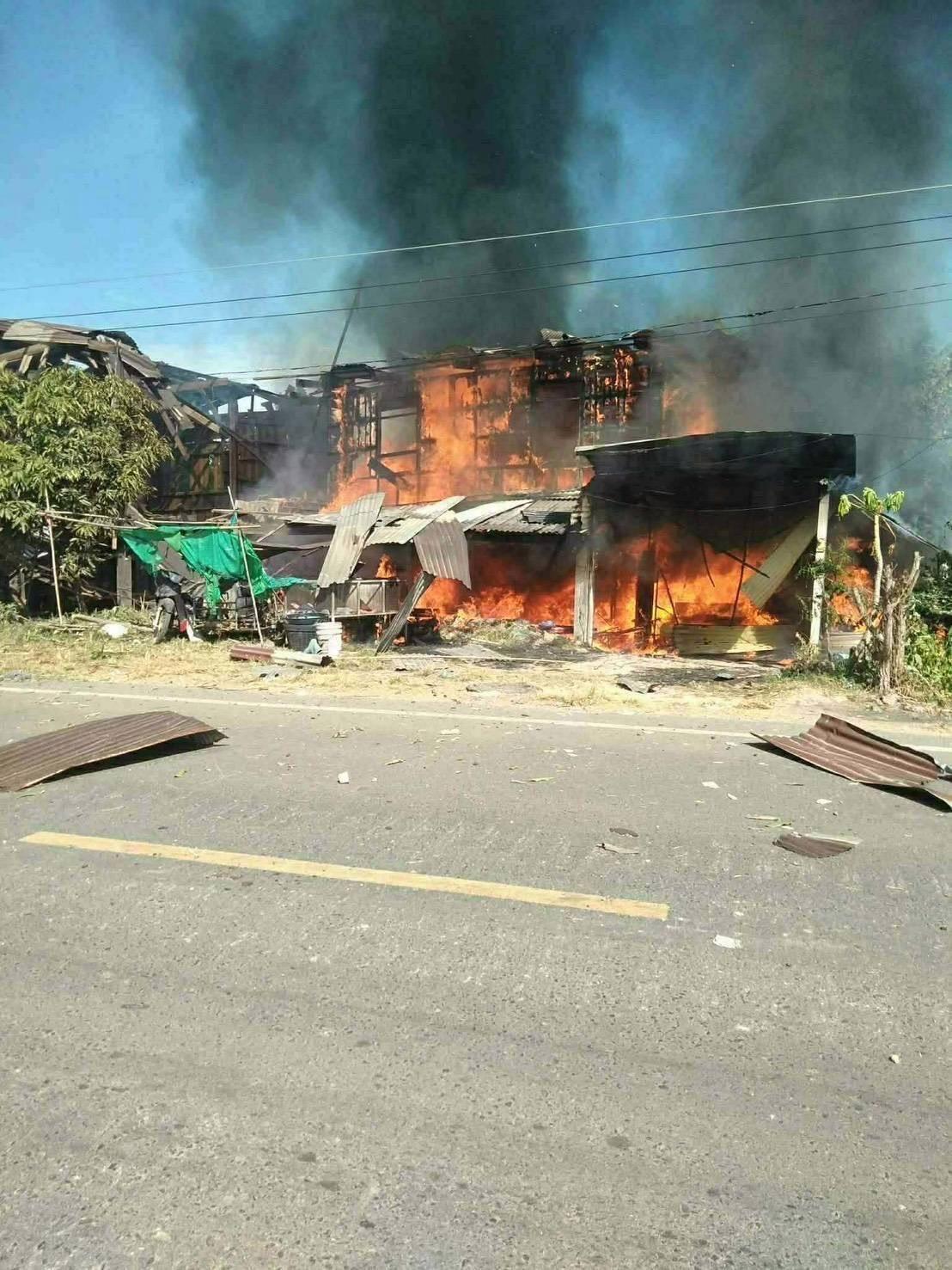 这张泰国军方提供的照片显示,12月13日,泰国四色菊府的一处民宅被火箭弹摧毁。新华社发(泰国军方供图)