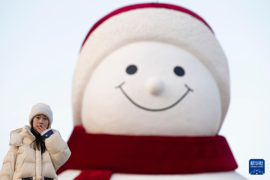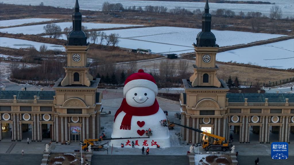12月15日,哈尔滨市群力音乐公园大雪人完成主体建设,进入到最后的细节打磨阶段。王松 摄