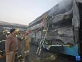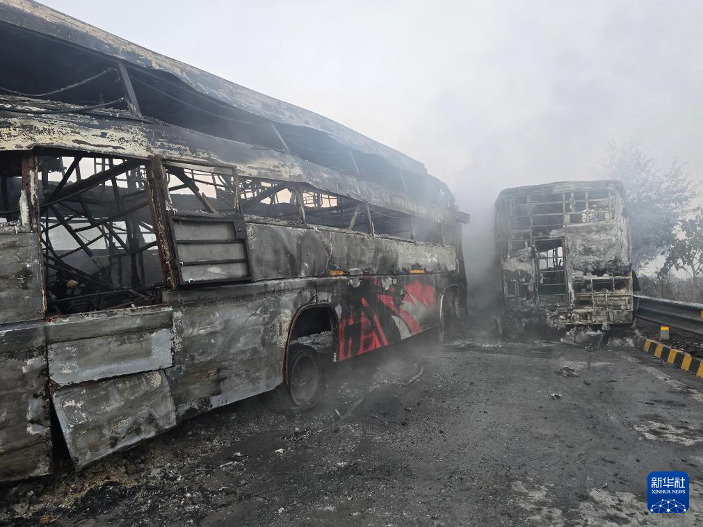 据印度媒体报道,德里至阿格拉高速公路16日凌晨发生10车连环相撞事故,造成至少4人死亡、25人受伤。图为这是12月16日在印度北方邦的马图拉事故现场拍摄的车辆残骸。新华社发