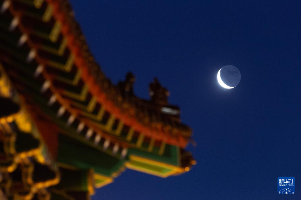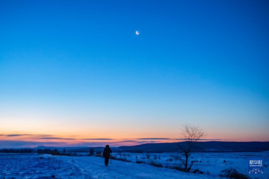 12月16日在黑龙江省黑河市拍摄的月亮。新华社发(钱泊羽摄)
