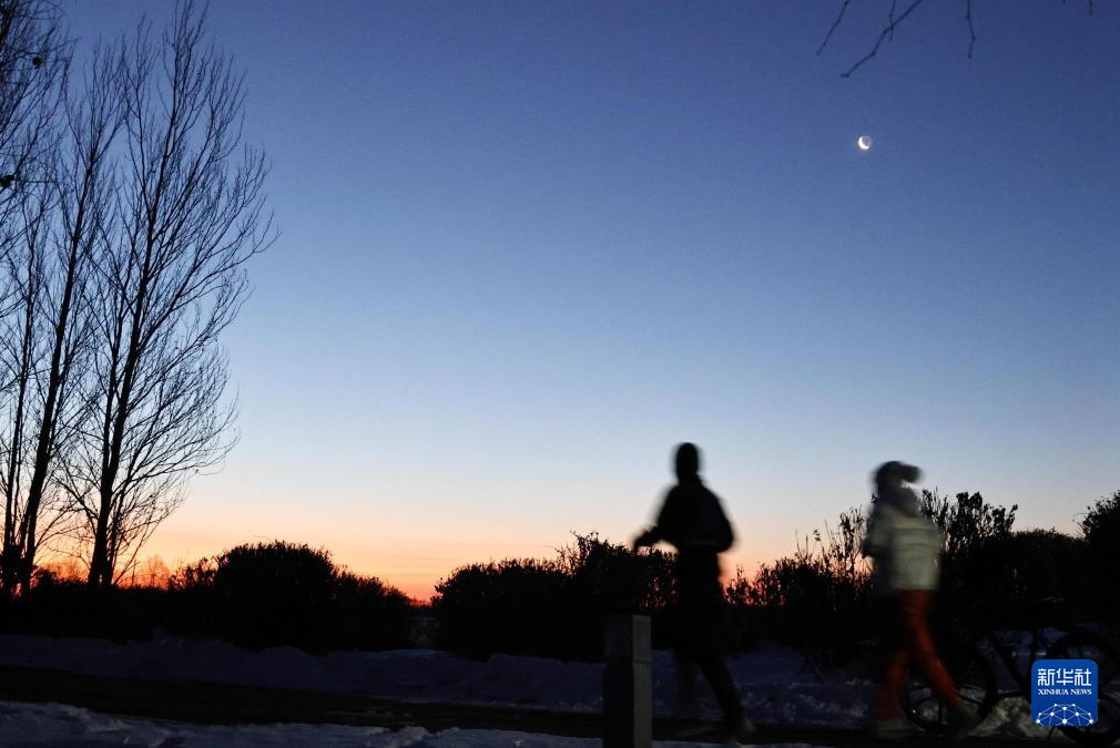 12月16日,天宇迎来本年度最小残月,其间,月球位于轨道远地点附近,人们看到的月亮像是一弯纤细的银钩。图为12月16日在黑龙江省富锦市拍摄的月亮。新华社发(曲玉宝摄)