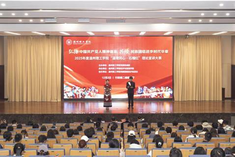 近日,在温州理工学院2025年度“温理同心·石榴红”理论宣讲大赛决赛现场,这样的金句与故事接连抛出,赞叹声、掌声和沉思在现场交织成一片。