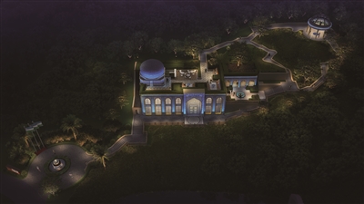轴线的尽头是全园的核心建筑。其穹顶设计参考了乌兹别克斯坦经典建筑样式,但进行了适当的简化和比例调整,以适应当地环境。建筑外立面使用了超过1.2万块特制的蓝紫色釉面砖,均由温州本地窑厂烧制。