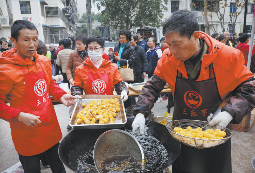 12月18日,鹿城区松台街道水心社区举行“便民服务暖人心,冬日关怀伴你行”活动,义工特地烹制了适合老人口味的咸口汤圆。 蒋文广 摄