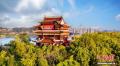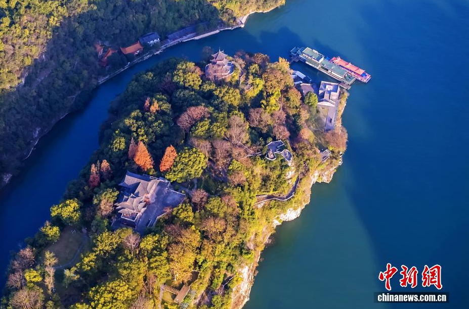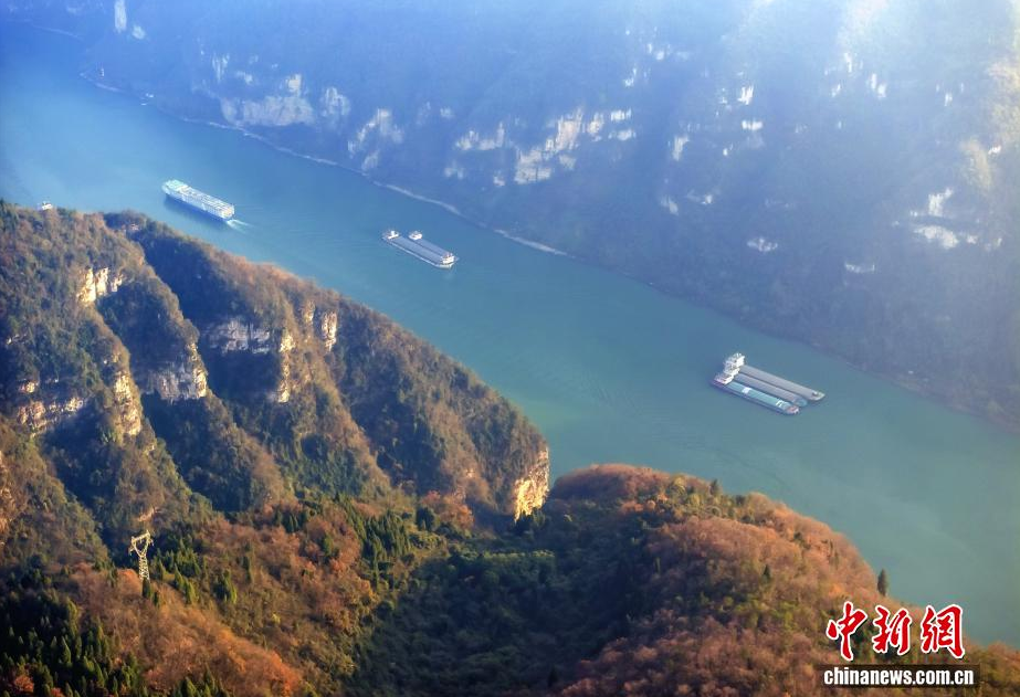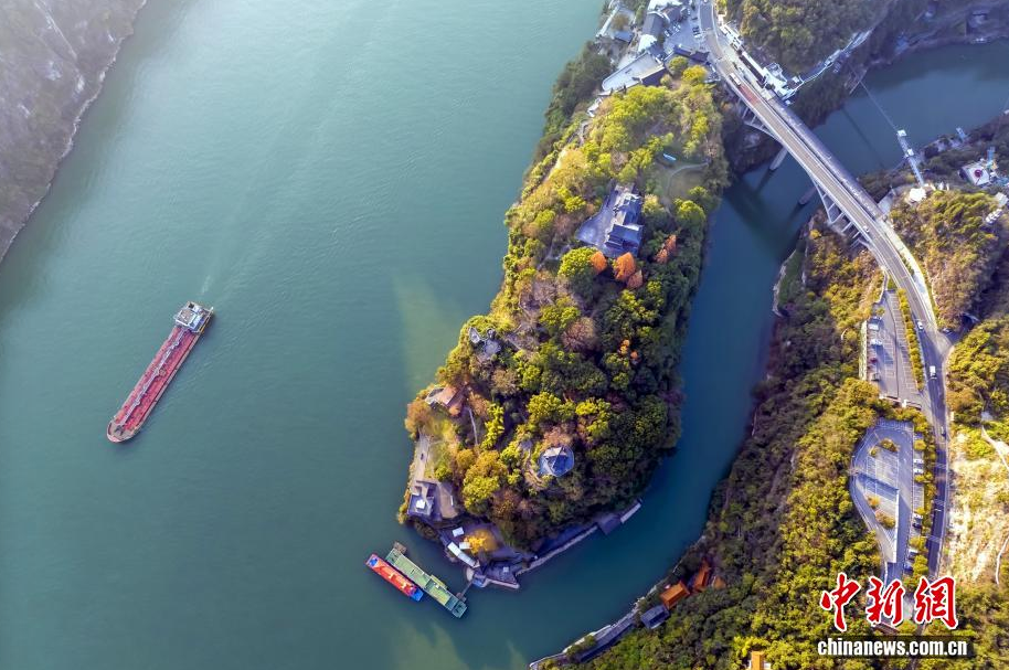 冬季的长江三峡西陵峡口南津关,五彩斑斓的植被与澄澈碧绿的江水相互映衬,两岸崖壁陡峭,船舶穿梭往来,尽显雄浑气魄。南津关地处湖北省宜昌夷陵区,是长江出川的最后一道关口,也是三峡尾端的天然门户,素有“雄关蜀道,巍巍荆门”之说。图为斑斓的植被与澄澈的江水相互映衬。