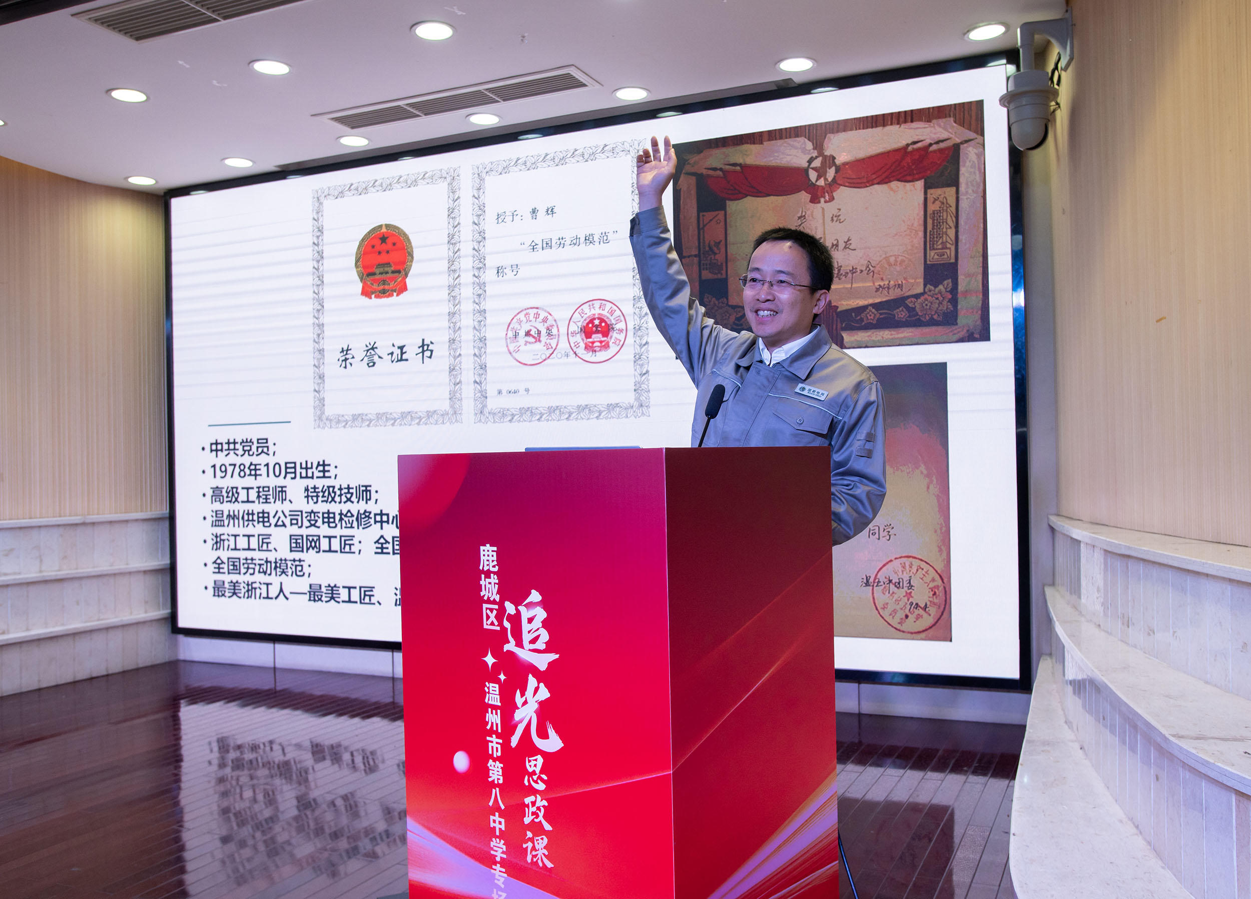 他们都是我们身边的“追光者”。12月18日,温州市第八中学的讲台上迎来了四位特殊的老师——他们中有坚守实业三十七载的劳模工匠,有扎根社区二十年的党委书记,有与电力设备相伴半生的技能大师,也有用笔和声音传递温暖的新闻工作者。这一天,他们共同以“追光者”的身份,向台下的少年们讲述自己的故事,在年轻的心田里播撒光明的种子。