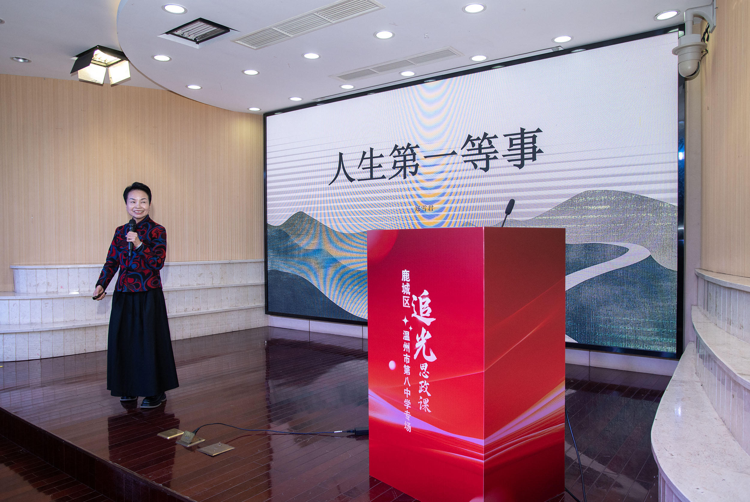 全国劳动模范、温州晚报雪君工作室主持人郑雪君,则用自己半生的人生体悟,回答了“何为人生第一等事”的命题。她以“立志”为核心,讲述了自己如何从车间女工成长为知名媒体人,又如何创办工作室、搭建起连接百姓与政府的桥梁。她对同学们说:“如果你当下立志,你的人生就开始出发了。有了明确的目标和方向,奋勇向前,美好的前程会向你招手致意。”她的话语充满激情与感召,仿佛为少年们推开了一扇看向远方的窗。