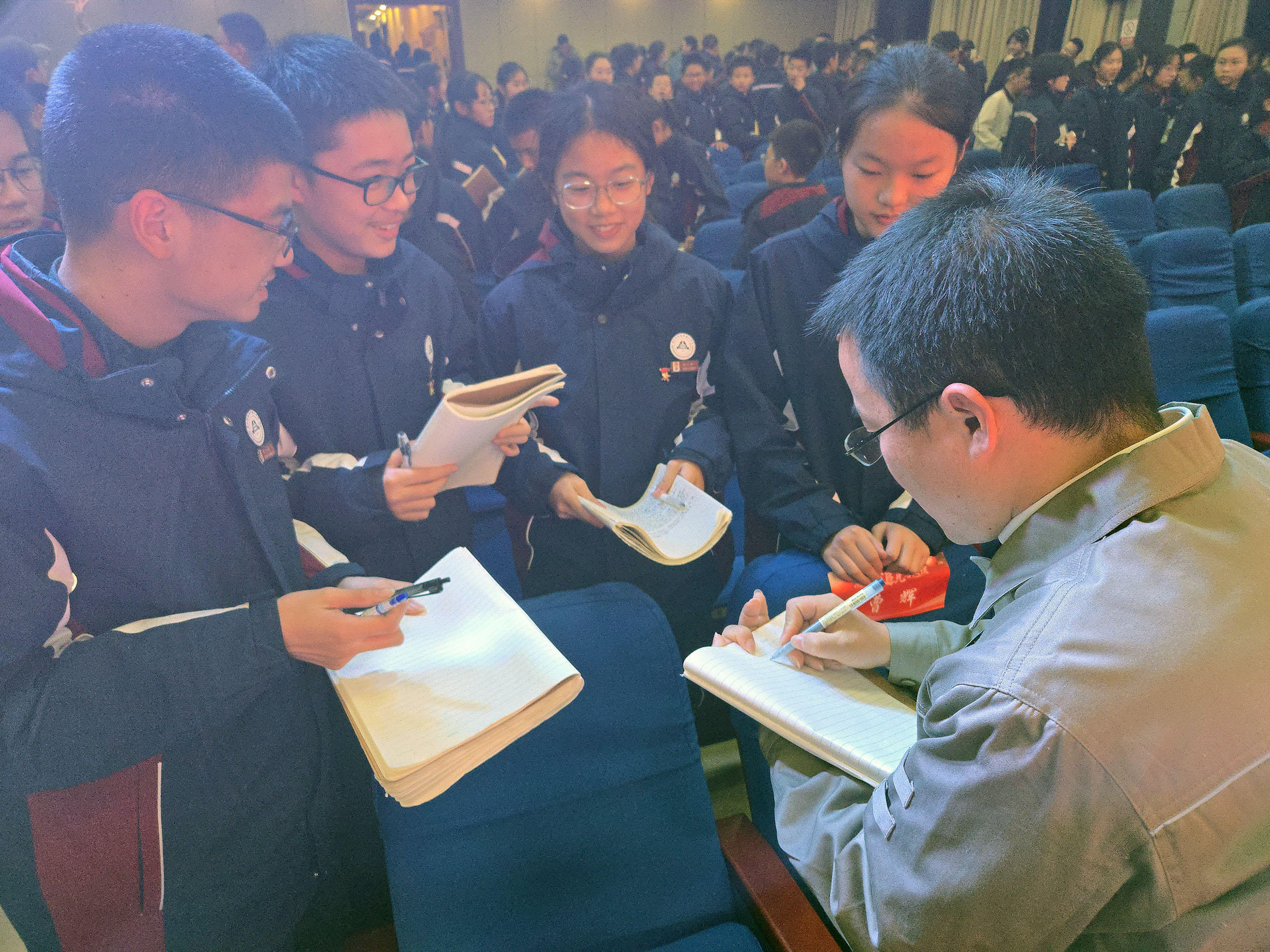 这些来自平凡岗位的不平凡故事,深深打动了在场的每一位学子。“追光者”们的幽默质朴与真情流露,引得学生们在欢笑声中频频点头,在惊叹声中提笔记录。宣讲结束后,许多学生意犹未尽,拿着本子涌上前去,请心中的榜样签名留念,眼神中闪烁着被点亮的光芒。