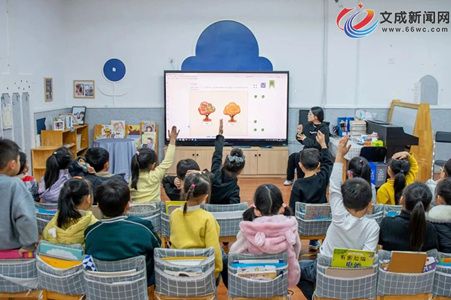 随后,记者来到玉壶镇幼儿园,这里的教学一体机同样让课堂焕发新活力。相较于以往的电视机教学,清晰的画质、流畅的触控操作,让老师们的教学思路得以充分拓展。课堂上,静态的绘本通过一体机变成了有声有色的动态故事,孩子们跟着画面沉浸其中,举手发言的积极性大幅提高。