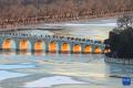 这是12月21日拍摄的颐和园十七孔桥“金光穿洞”美景。新华社记者 陈晔华 摄