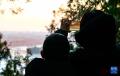 12月21日,游客在颐和园万寿山上拍摄十七孔桥“金光穿洞”美景。新华社记者 陈晔华 摄